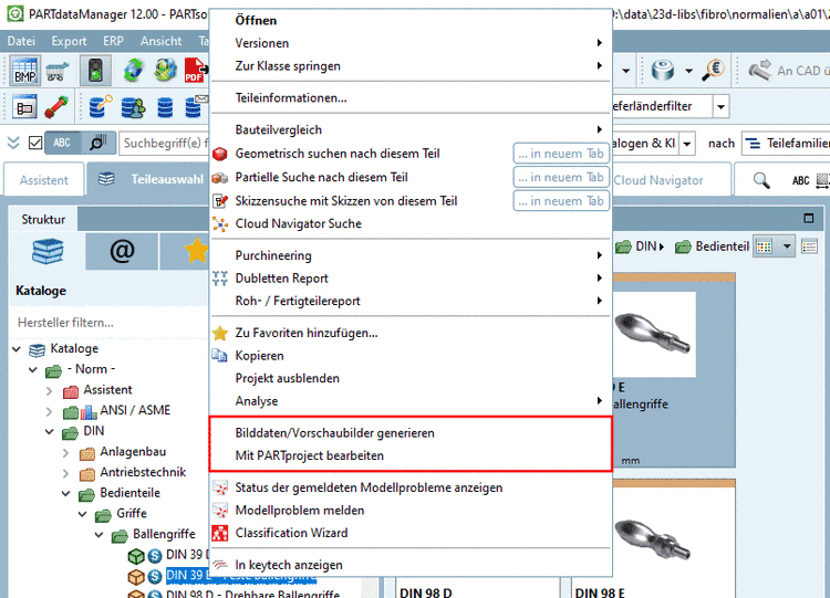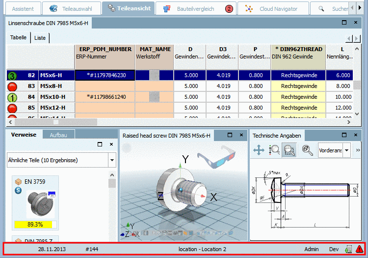 Wird "Dev" angezeigt, stehen im PARTdataManager entsprechende Kontextmenüs zur Katalogentwicklung zur Verfügung.