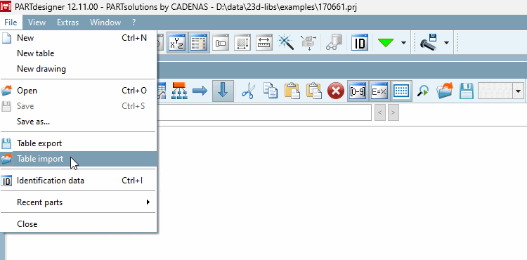 Import [Table import].Wählen Sie im Dialogfenster das gewünschte Dateiformat sowie weitere Einstellungen aus.