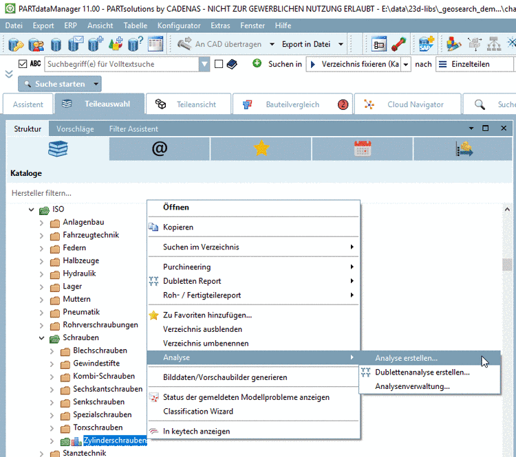 Rufen Sie auf einem Verzeichnis den Kontextmenübefehl Analyse -> Analyse erstellen... auf.