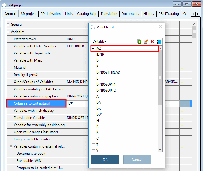 2. Klicken Sie rechts unter Projekt bearbeiten [Edit project] → Registerseite Allgemein [General]Variablen [Variables] Spalten mit natürlicher Sortierung [Columns to sort natural] auf die ... Schaltfläche.