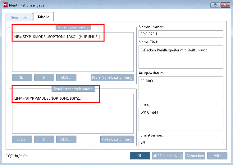 | Normbezeichnung (NB) | 'IPR $TYP.-$MODEL.$OPTION1.$GKS1. [HUB $HUB.]' |