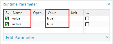 Aktivieren Sie dann im Fenster Operation die Laufzeit-Parameter und bestätigen Sie mit .
