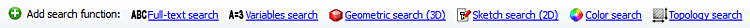Volltextsuche [Full-text search] | Variablensuche [Variables search] | Geometrische Suche (3D) [Geometric search (3D)] | Skizzensuche (2D) [Sketch search (2D)] | Topologiesuche [Topology search]
