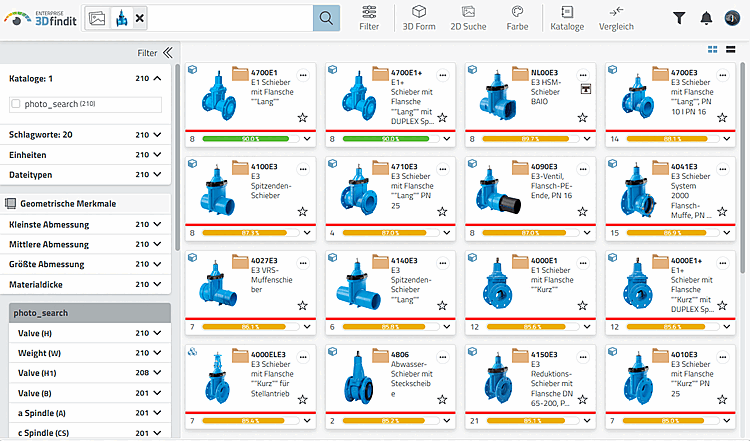 Im Folgenden sehen Sie ein Beispiel für eine Suche in 3Dfindit.