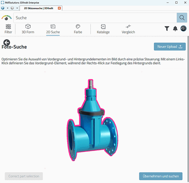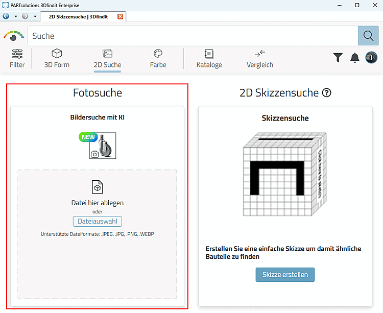 Öffnen Sie 3dfindit und klicken Sie auf das Icon 2D Suche [2D search].