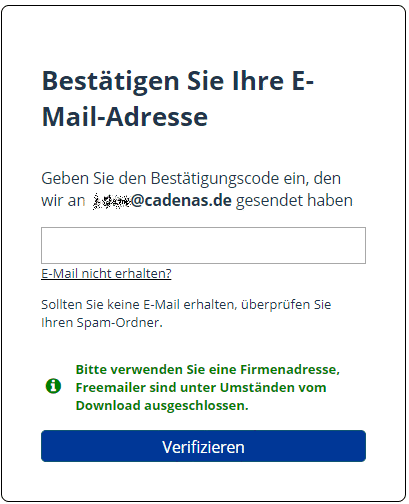 Bestätigen Sie Ihre E-Mail-Adresse, indem Sie im Dialogfenster den Bestätigungscode eingeben, den Sie per E-Mail gerade erhalten haben.