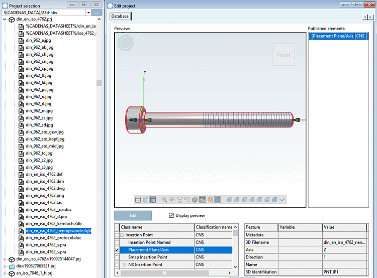 Um ein 3D-Bauteil aufzurufen und zu bearbeiten, klicken Sie auf die jeweilige *.3db-Datei im Verzeichnis-Baum.