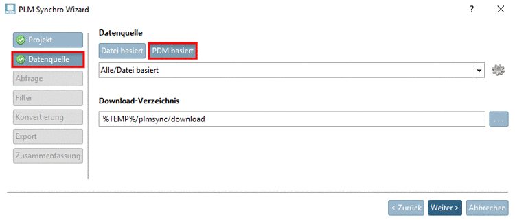 Die PDM-Schnittstelle kann direkt aus dem Wizard heraus konfiguriert werden.