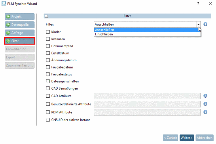 -> Der PLM Synchro Wizard wird geöffnet.