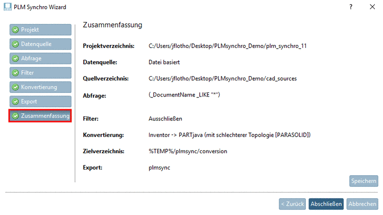 Dieser Wizard führt Sie durch den PLM Synchro Setup Prozess.