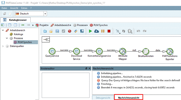 Bei Problemen erhalten Sie im Dockingfenster Nachrichtenansicht entsprechende Hinweise.