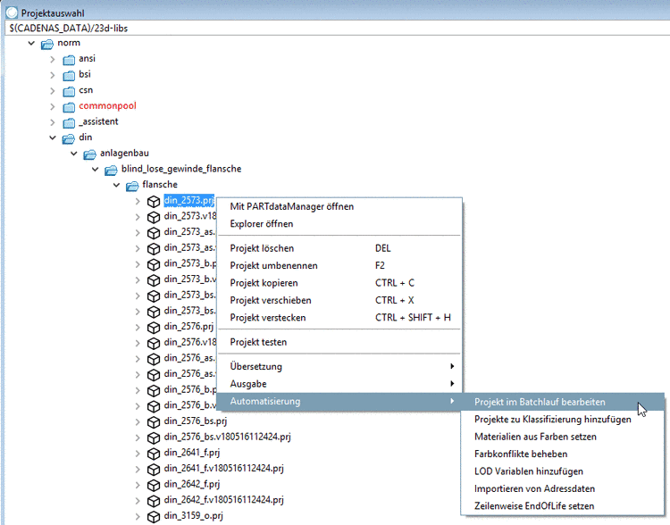 Wählen Sie im sich öffnenden Kontextmenü unter Automatisierung den Befehl Projekt im Batchlauf bearbeiten.