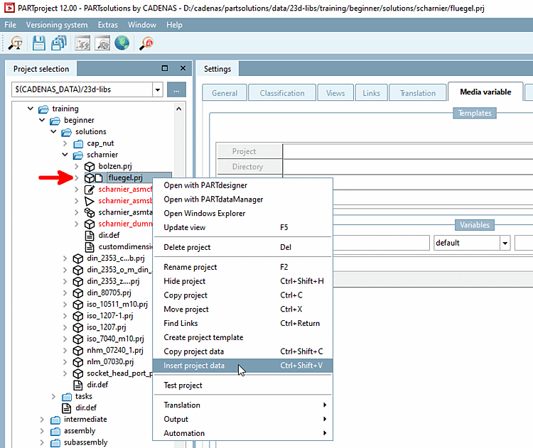 Rufen Sie das Kontextmenü auf und klicken Sie Projekt Daten einfügen [Insert project data].