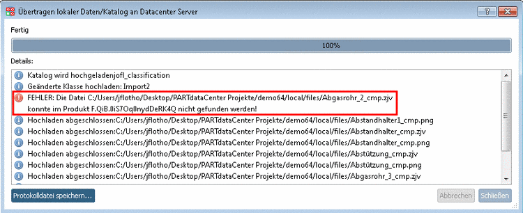 Sind Fehler vorhanden (zum Beispiel aufgrund von fehlerhaften Importteilen), ist kein Commit möglich.
