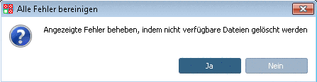 "Angezeigte Fehler beheben, indem nicht verfügbare Dateien gelöscht werden?"