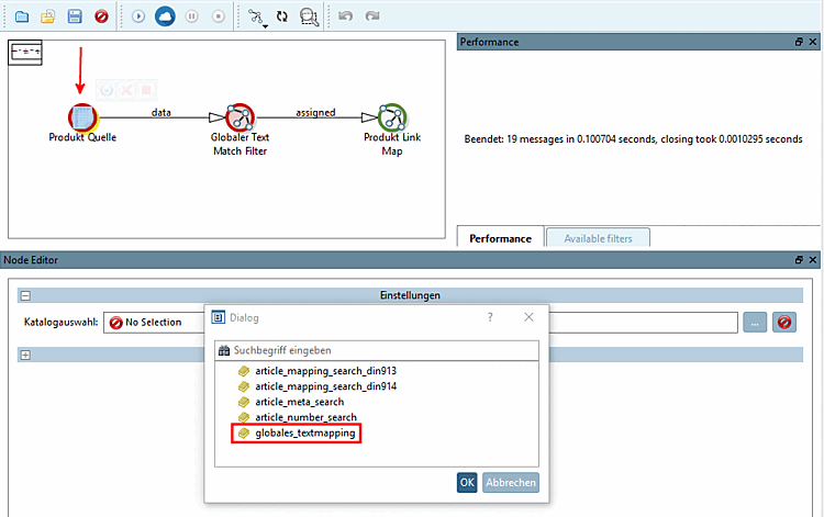 Selektieren Sie den Knoten Globaler Text Match Filter [Global Text Match Filter].