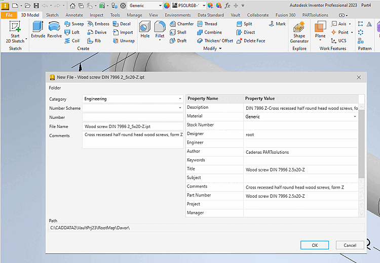 Therefore the cad file is not saved in the correct poolpath and the Vault api can not upload it.
