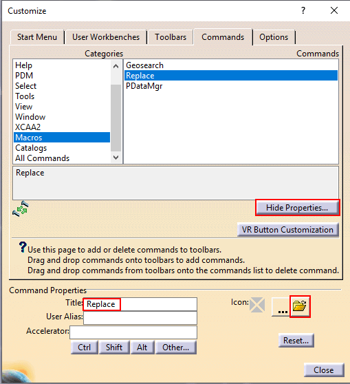 software\iface\catia\VB\resourcesToolbar aktivieren und mit entsprechenden Icons befüllen