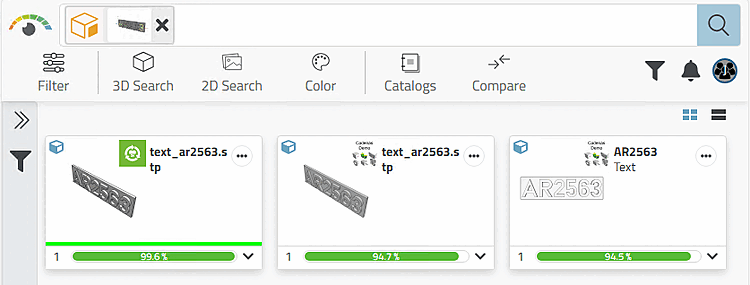 Sie können nach erhabenen Buchstaben, Zahlen oder irgendwelchen Zeichen an einem Teil suchen. Die Positionerung der einzelnen Elemente zueinander wird einbezogen.
