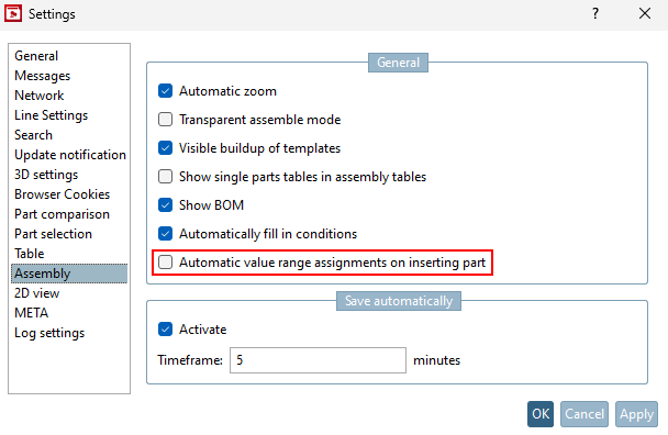 Es gibt nun eine Einstellung, welche den Wertebereich beim Einfügen neuer Teile automatisch setzt. Diese Einstellung ist regulär ausgeschaltet und muss extra aktiviert werden über eine gleichnamige Einstellung.