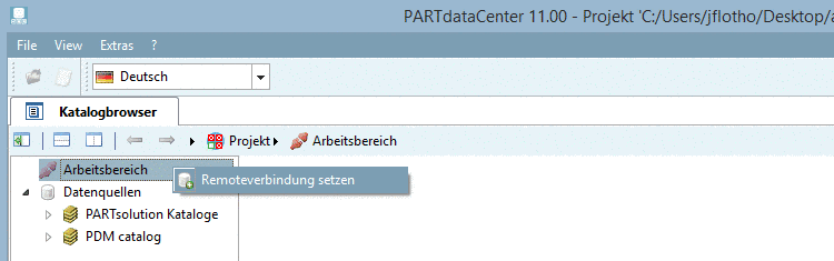 Klicken Sie im Kontextmenü von Arbeitsbereich auf Remoteverbindung setzen.
