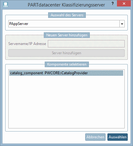 -> Es öffnet sich das Dialogfenster PARTdatacenter Klassifizierungsserver.