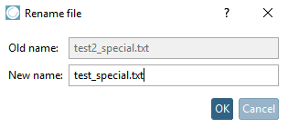 -> Das gleichlautende Dialogfenster wird geöffnet. Dort sehen Sie den Namen der aktuell gewählten Datei (Alter Name [Old name]).