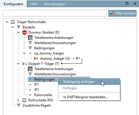 Rufen Sie beim Bauteil "Doppel-T-Träger (T)" unter Bedingungen den Kontextmenübefehl Bedingung einfügen auf.