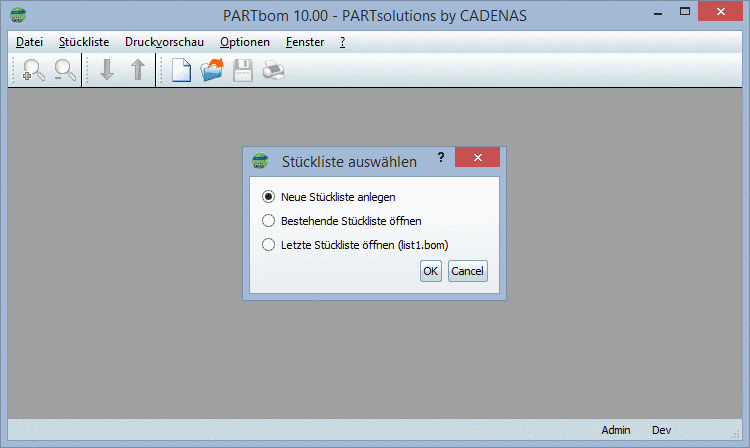 -> Danach öffnet sich PARTbom mit folgender Abfrage: