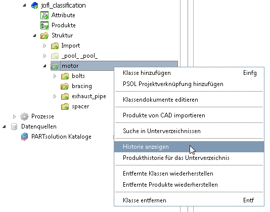 Rufen Sie im Kontextmenü einer Klasse den Befehl Historie anzeigen auf.