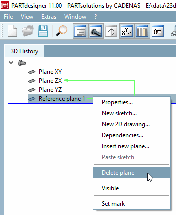 Nur zusätzlich erzeugte Referenzebenen können wieder gelöscht werden (siehe Abschnitt 7.6.2.3, „ Reference Plane “).