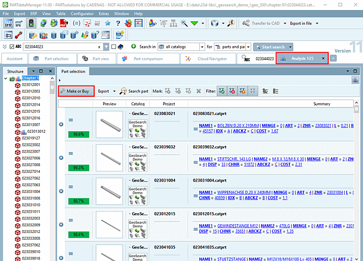 Aktivieren Sie links die gewünschte Methode (hier im Beispiel Make-or-Buy [Make or Buy]).