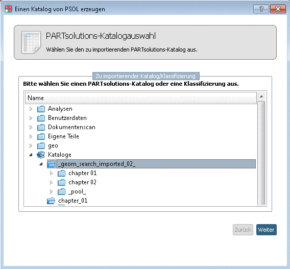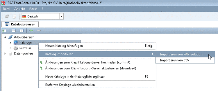 Klicken Sie im Kontextmenü von Kataloge auf den Menüpunkt Katalog importieren -> Importieren von PARTsolutions.