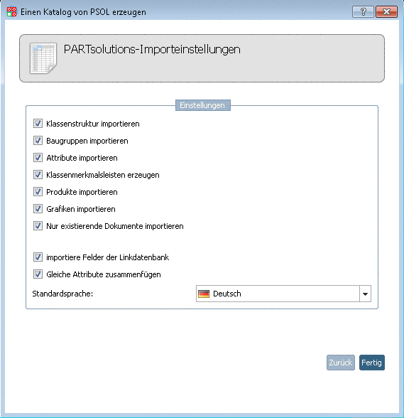 -> Die Einstellungsoptionen PARTsolutions-Importeinstellungen werden geöffnet.
