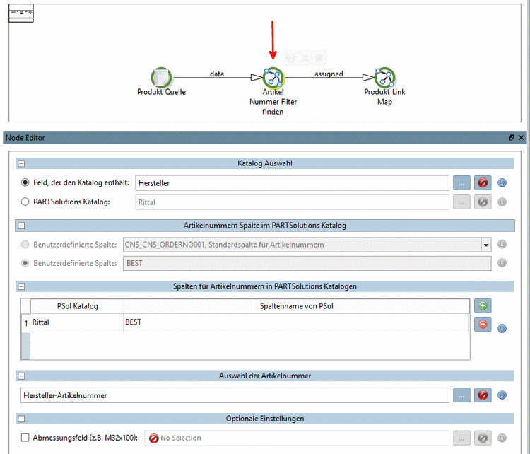 Auswahl der Artikelnummer: Wählen Sie das Feld (oder auch mehrere), welches die Artikelnummer beinhaltet.