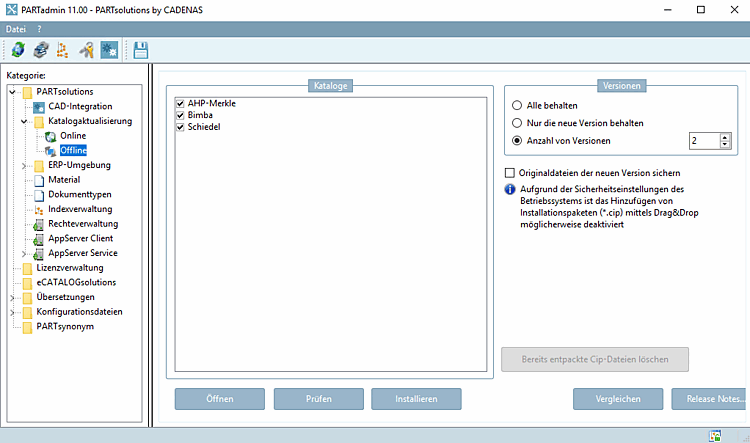 Wenn Sie unter Katalogaktualisierung [Catalog update] -> Online die Option Nach dem Herunterladen installieren [Install after download] deaktiviert hatten, dann liegen die heruntergeladenen Katalog-Dateien nun im temporären Download Verzeichnis [Download directory], welches Sie im Einstellungsdialog bestimmt hatten.