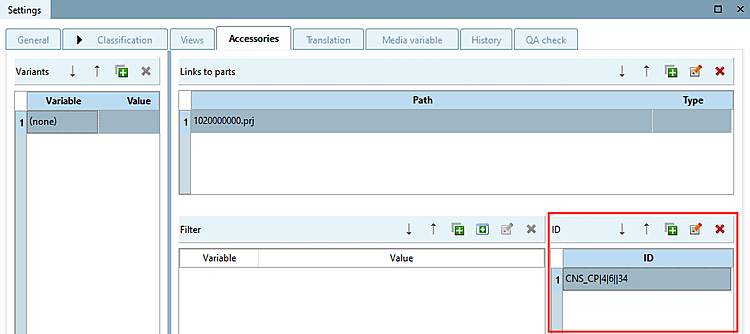 Der Dialogbereich ID wird beispielsweise für die Elektroteile-Klassifikation benötigt.
