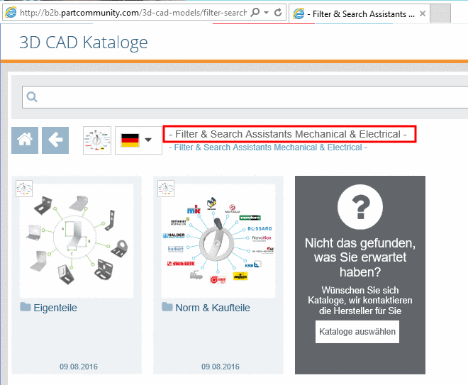 Hersteller-bezogene Filterassistenten (von Seiten des Katalogherstellers bereitgestellt, mit Projekttyp Such-Assistent oder Berechnungs-Assistent erstellt)