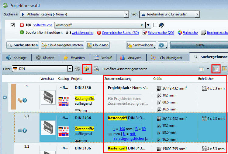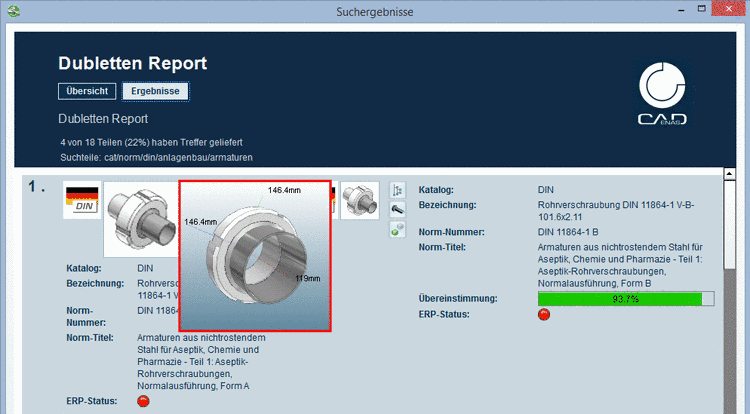 Rufen Sie hierzu den Kontextmenübefehl Geo-Vergleich mit diesem Teil auf dem gewünschten Teil auf. Das Suchteil (100%) wird als solches gekennzeichnet.