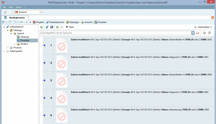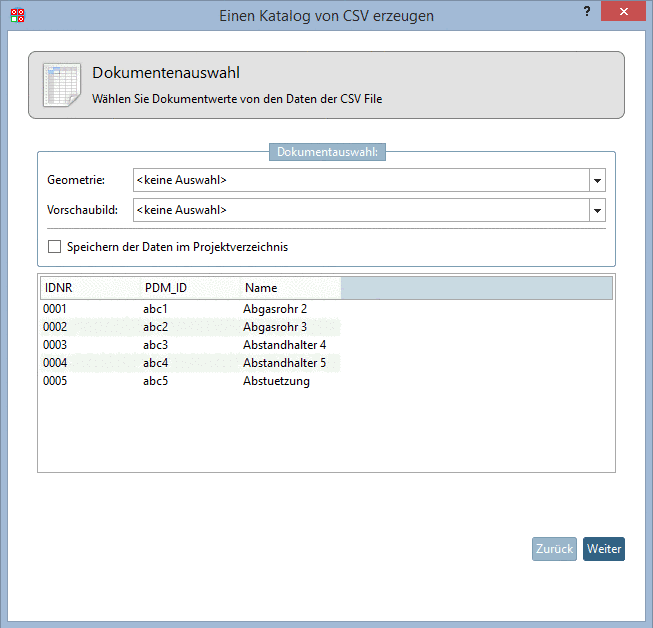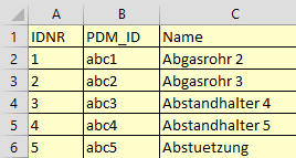 Geometrien, Vorschaubilder und technische Ansichten können in weiteren Bearbeitungsschritten zugefügt werden. Siehe hierzu Abschnitt 1.3.5.3, „Produktdokumente editieren“. Enthält die Tabelle die PDM-Dokumentennummer (im Beispiel oben "PDM_ID"), kann mittels Skripting auch automatisiert auf Dokumente im PDM zugegriffen werden und entsprechende Prozesse angestoßen werden.