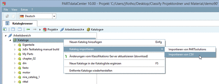 -> Außerdem wird nun der Katalog links im Baum angezeigt. Die Bezeichnung ist der Name der CSV-Datei. Sie können die Bezeichnung ändern, wenn Sie den Katalog selektieren.