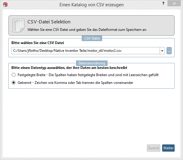 Wählen Sie über die Durchsuchen-Schaltfläche ... die gewünschte CSV-Datei und bestimmen Sie den Datentyp.