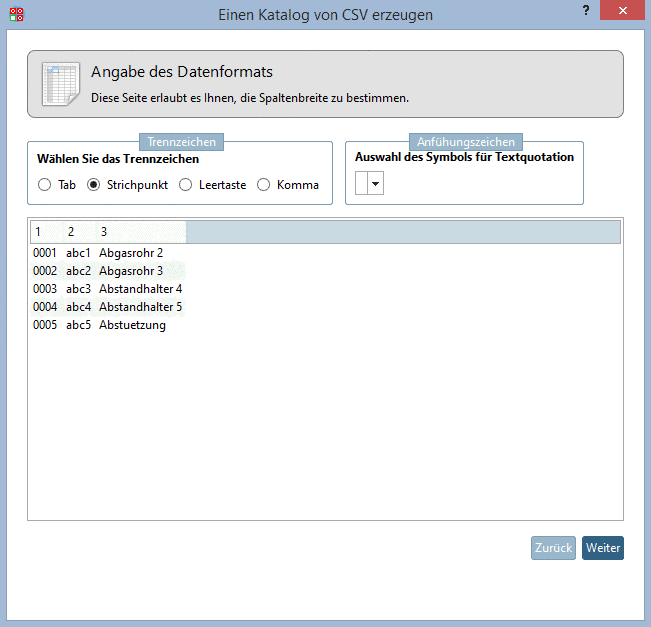 Im Folgenden ist der Import eines CSV-Kataloges beschrieben.