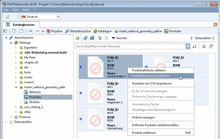 Der Aufruf erfolgt in PARTdataCenter über Kontextmenübefehl Produktdokumente editieren -> Technische Zeichnung hinzufügen.