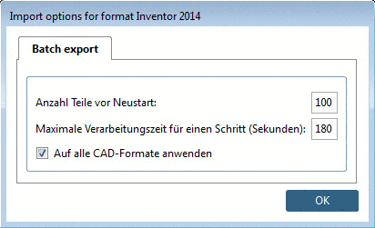 Es öffnet sich ein Dialogfenster für Batchexport-Optionen.