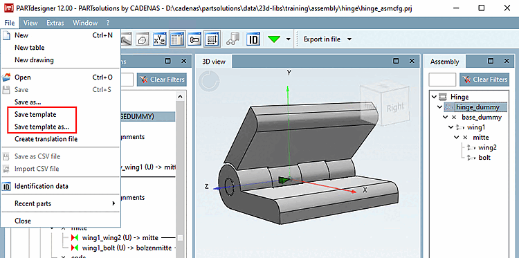 Befehle Schablone speichern [Save template] und Schablone speichern unter... [Save template as...] stehen im