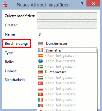 Die Beschreibung erscheint in PARTdataManager, in der Tabelle unterhalb des Variablennames in der eingestellten $CADENAS_LANGUAGE.. Vergleiche Abb. oben.