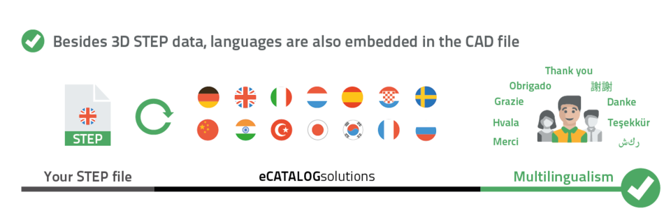 With eCATALOGsolutions, you will make your existing 3D STEP / CAD data available in the most common languages.