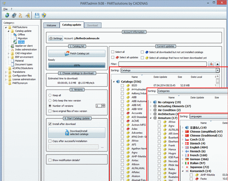 Details on the Online update can be found under Section 1.3.4.1, “ Catalog update Online ” in PARTsolutions - Administration Manual.