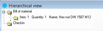 Mark the part with the mouse and drag it into the Bill of material folder. As soon as a frame (blue) shows up around the Bill of material folder, let go of the mouse button. |